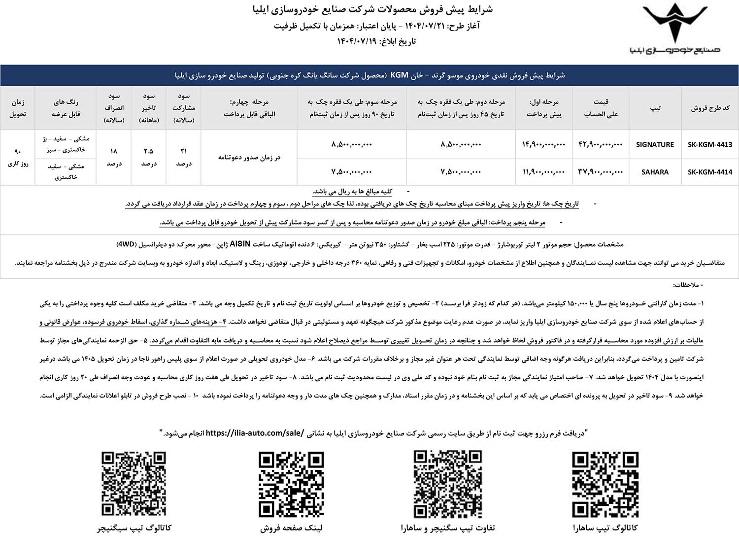اطلاعات و فرم رزرو این مرحله از فروش پیکاپ موسو گرند- خان به صورت نقدی و اعتباری از طریق صفحه فروش صنایع خودروسازی ایلیا در دسترس خواهد بود.