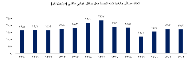 تحلیلگر شرکت مشاور سرمایهگذاری ترنج گفت: تعداد کل مسافران جابهجا شده با قطار در سال ۱۳۷۰ حدود ۸.۱ میلیون نفر بود که این رقم تا سال ۱۳۸۹ با رشد ۲۵۵ درصدی به ۲۸.۸ میلیون نفر رسید. پس از آن، در فاصله سالهای ۱۳۹۰ تا ۱۳۹۶ با افزایش اقبال عمومی به حملونقل هوایی، سهم قطارها کاهش یافت؛ اما جهش نرخ ارز در سال ۱۳۹۷ و رشد قیمت بلیت هواپیما باعث بازگشت مسافران به ناوگان ریلی شد.