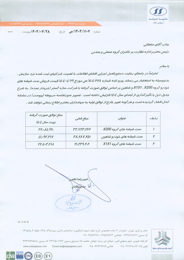 شرکت سایپا شیشه با نماد«کساپا» در اطلاعیه افشای اطلاعات بااهمیت گروه الف خبر داد: نرخ هر ست همگن شیشههای ایمنی خودروی تیبا به ۳ میلیون و ۶۰۸ هزار تومان رسید.