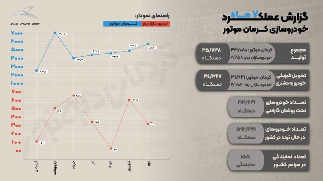 بر اساس آمار منتشر شده از سوی وزارت صمت، تولید کرمان موتور در هفت ماهه نخست سال جاری از مرز 35 هزار دستگاه عبور کرده است.