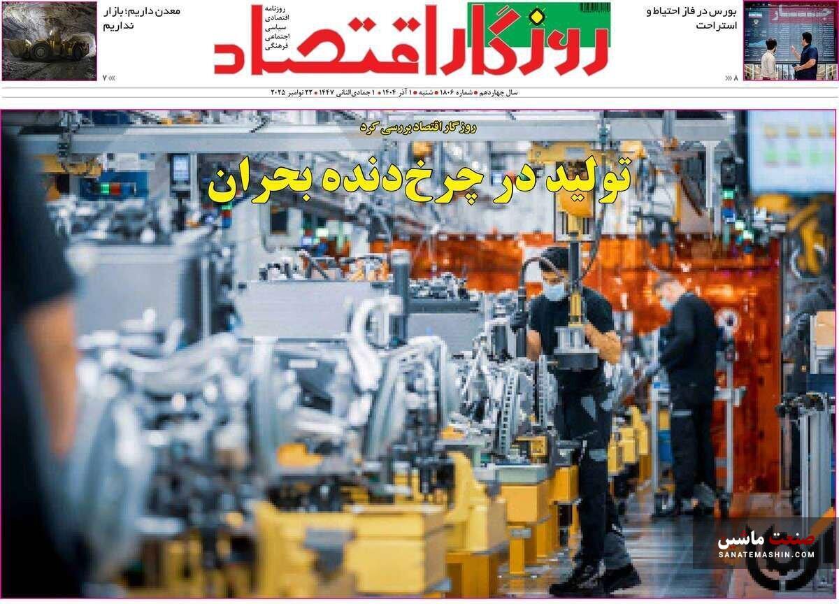 به گزارش صنعت ماشین ؛ صفحه نخست روزنامه های اقتصادی 1 آذر 1404 به شرح زیر است: