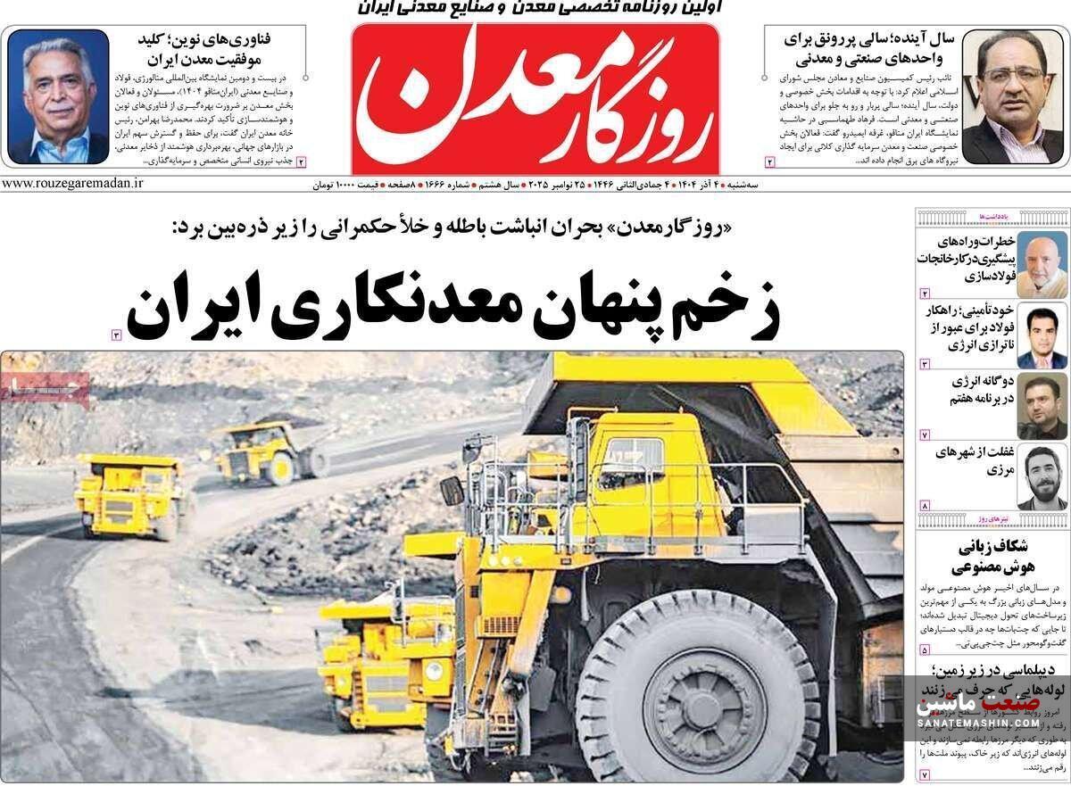 به گزارش صنعت ماشین ؛ صفحه نخست روزنامه های اقتصادی 4 آذر 1404 به شرح زیر است: