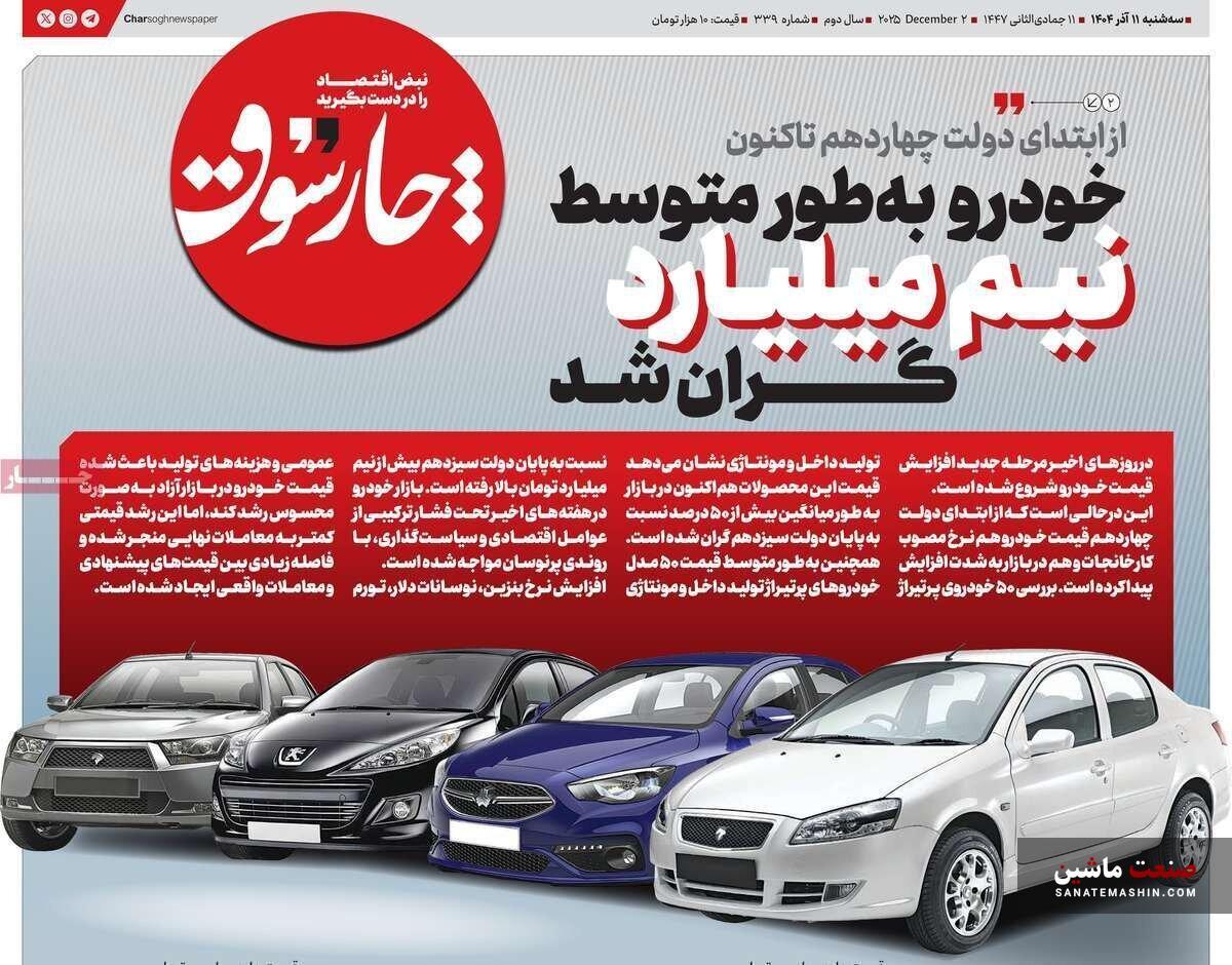 صنعت ماشین: صفحه نخست روزنامه های اقتصادی 11 آذر 1404 در صنعت ماشین منتشر شد.