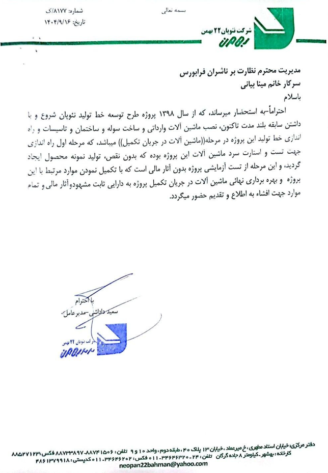 شرکت نئوپان ۲۲ بهمن با نماد«چنوپا» در اطلاعیه افشای اطلاعات بااهمیت گروه ب از تمدید راه اندازی موقت پروژه طرح توسعه خط تولید نئوپان خبر داد.