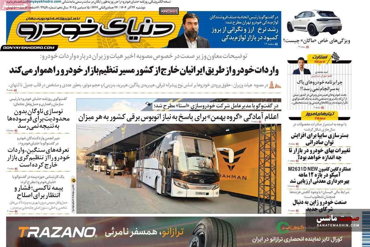 صنعت ماشین: صفحه نخست روزنامه های اقتصادی 24 آذر 1404 در صنعت ماشین منتشر شد.