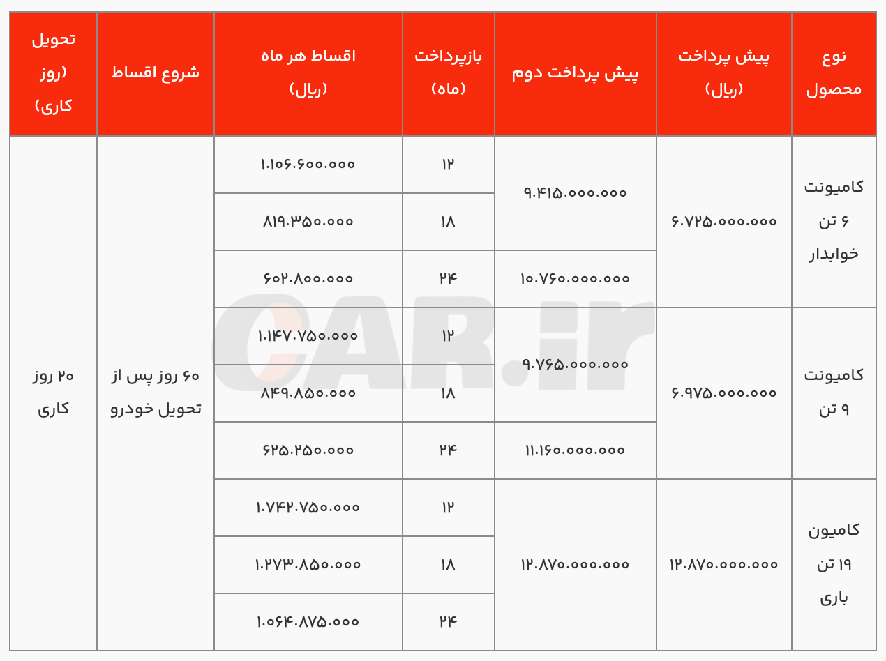 فروش اقساطی محصولات کامیونت و باری دیما
