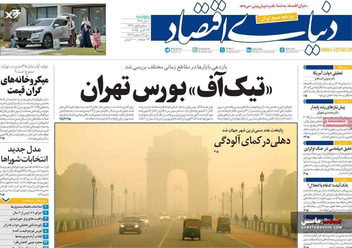 به گزارش صنعت ماشین ؛ صفحه نخست روزنامه های اقتصادی 1 آبان 1404 به شرح زیر است: