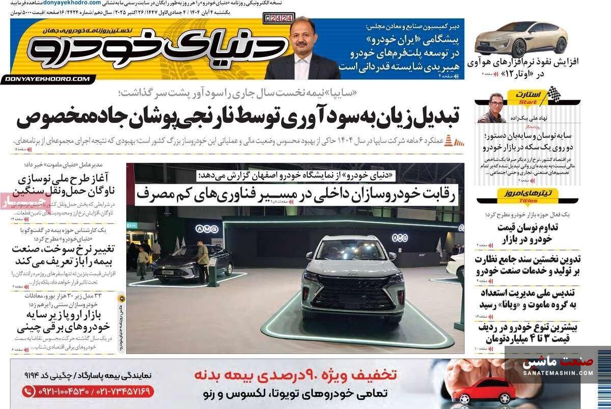 صنعت ماشین: صفحه نخست روزنامه های اقتصادی 4 آبان 1404 در صنعت ماشین منتشر شد.