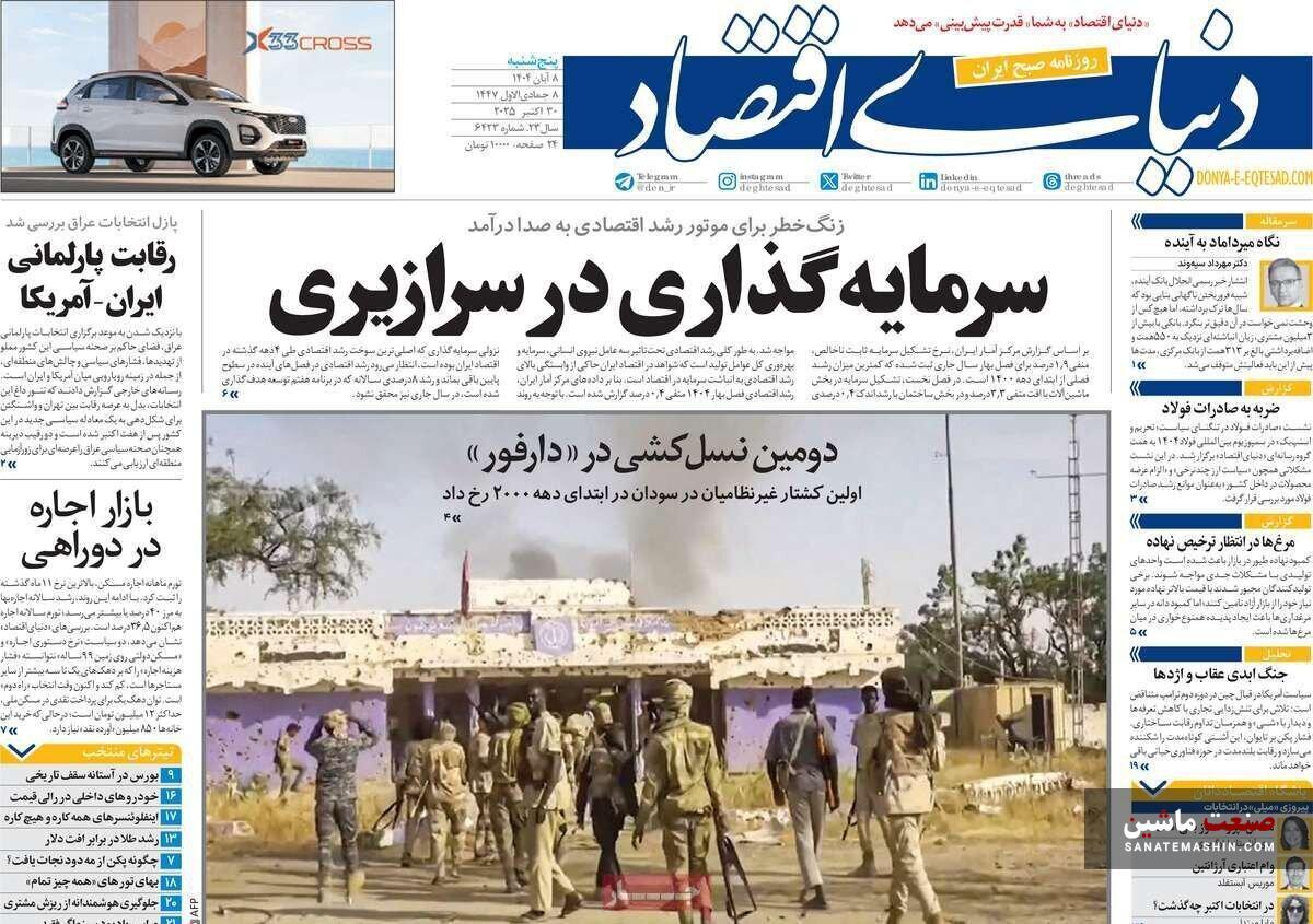 صنعت ماشین: صفحه نخست روزنامه های اقتصادی 8 آبان 1404 در صنعت ماشین منتشر شد.